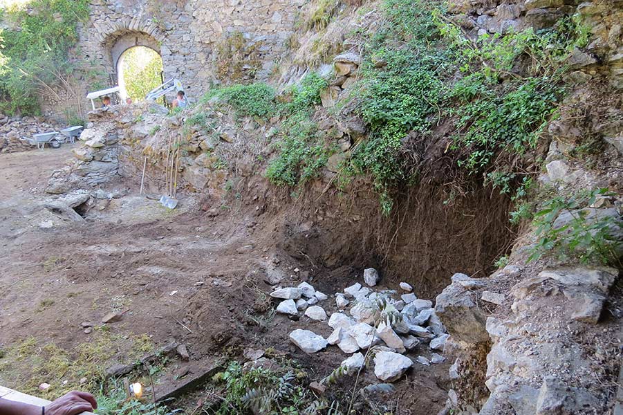 einsatz1-ruine-29I08I2015-40 21. September 2015 • 901 × 600 • Arbeitseinsatz Verein August 2015 Mauern wurden von Sträuchern und eingestürzten Steinen frei gelegt.