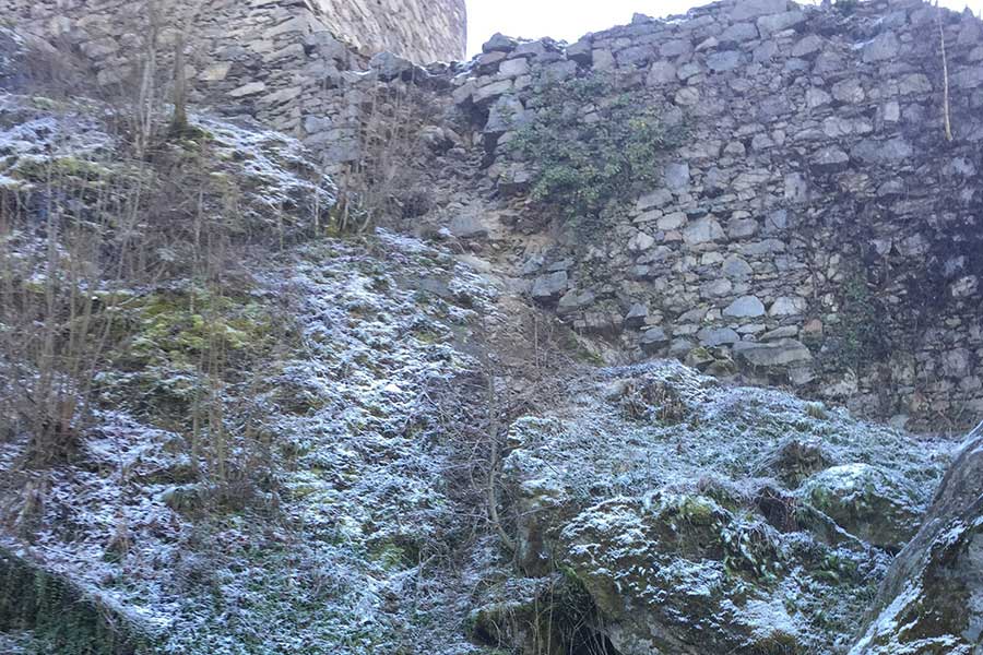 loch-erhoehte-wehrmauer-dez16 3. August 2017 • 900 × 600 • Steinmetz am Werk Dezember 2016: Man siehst schon ganz deutlich den Verfall der Mauer.