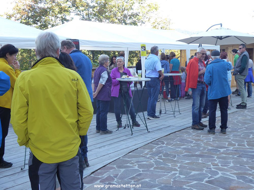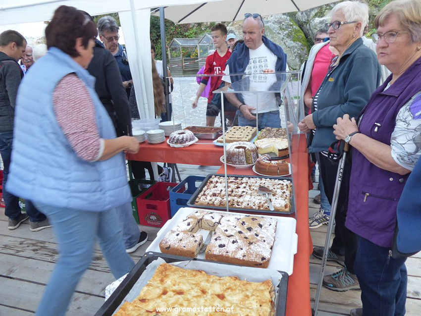 Bei Kaffee & Kuchen sowie Most vom Köglerhof wurde noch gemütlich geplaudert. Am Infostand vom Verein zur Burgruine Lichtenhag konnte man sich viele Vorher-Nachher Bilder ansehen sowie auch Mitglied beim Verein werden.