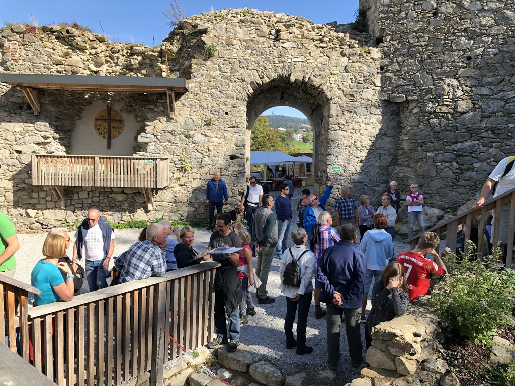 Bei strahlendem Sonnenschein und wunderschöner herbstlicher Stimmung kamen ca. 60 Wanderer unserer Einladung nach, am Tag des Denkmals zur Burgruine Lichtenhag zu wandern.