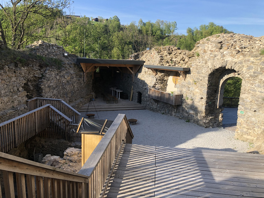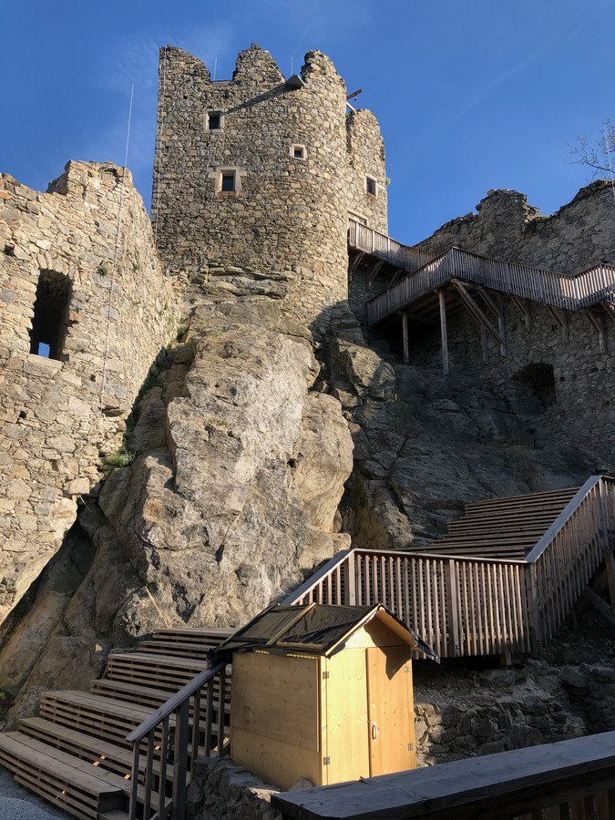 Es ist schon eine sehr verrückte Zeit in der wir gerade leben. Noch vor einem Jahr waren täglich bis zu 20 Leute hier bei der Burgruine am werken, damit wir bis zur Eröffnung im Juni fertig werden und wir die Ruine endlich für die Öffentlichkeit zugänglich machen können. Und genau ein Jahr später ist es hier so ruhig wie noch nie. Nur der Pfau und die Turmfalken schreien um die Wette.