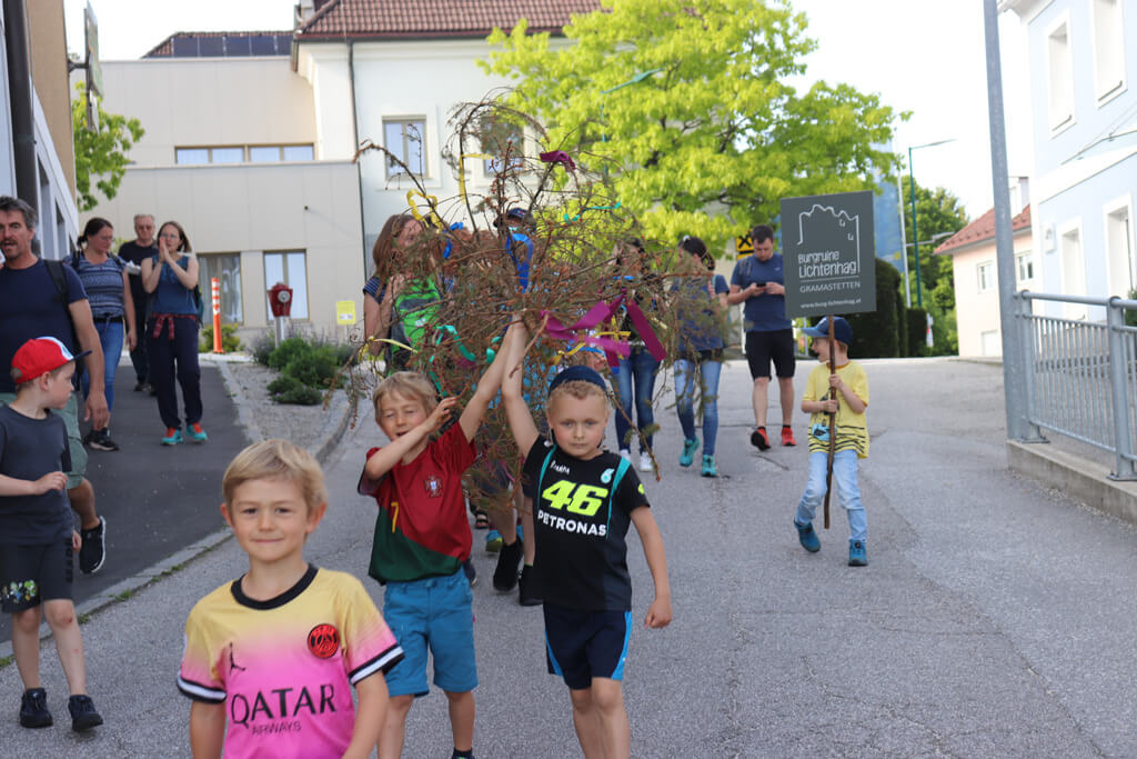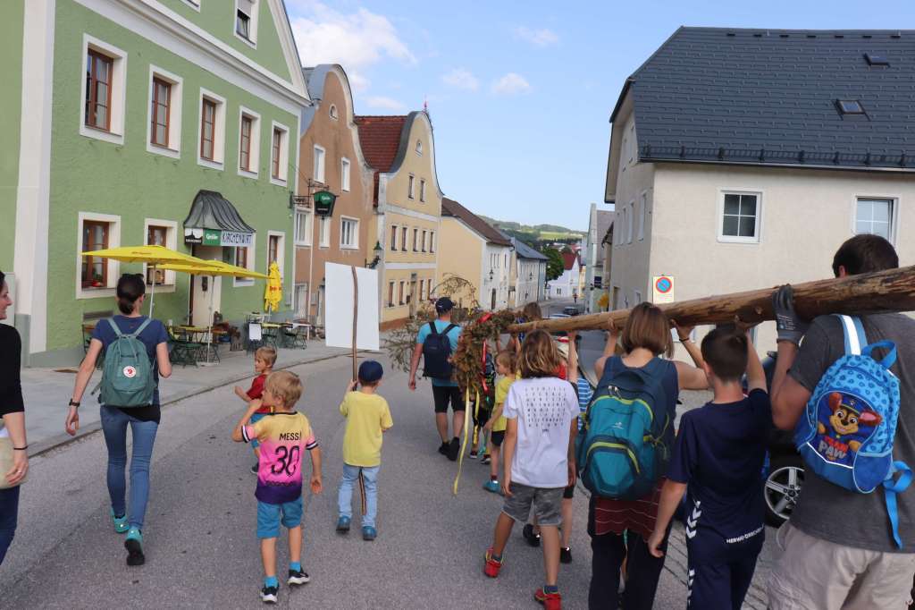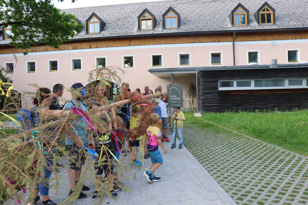 In Gramastetten fängt das schon bei den Kleinsten an. Denn die Pädagoginnen vom Kindergarten lernen bereits den Jüngsten den Verlauf der Jahreszeiten sowie die dazugehörigen Feste. So wurde Anfang Mai mit viel Mühe ein Maibaum im Pfarrhof vor dem Kindergarten aufgestellt.
