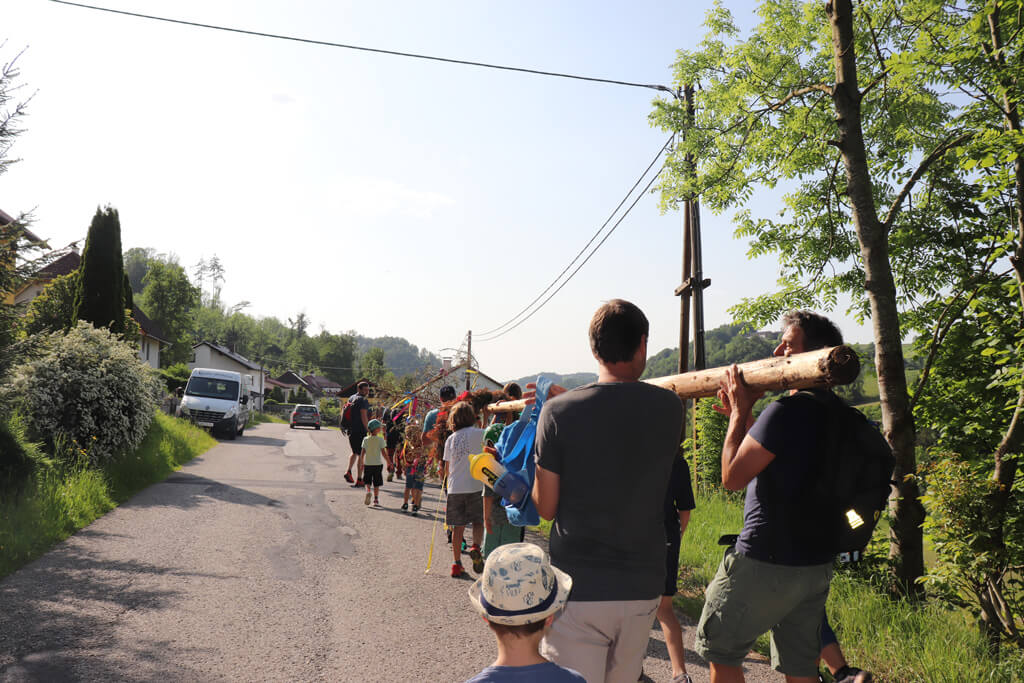 Das Maibaum stehlen 2022 war ein besonders Highlight. Und da alle Kinder und Erwachsenen so eine Freude dabei hatten, stand das Maibaum stehlen auch heuer wieder fix am Programm.