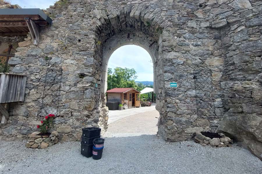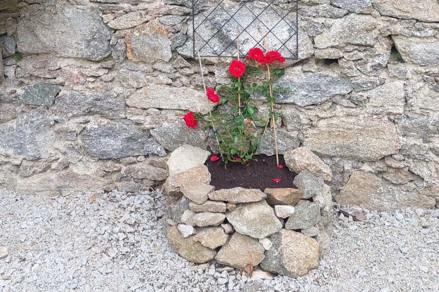 Erich Pröll und seine Lebensgefährtin Jutta haben uns vor einigen Tagen eine wunderschöne Kletterrose geschenkt, die einen besonderen Platz im Burghof bekommen hat.