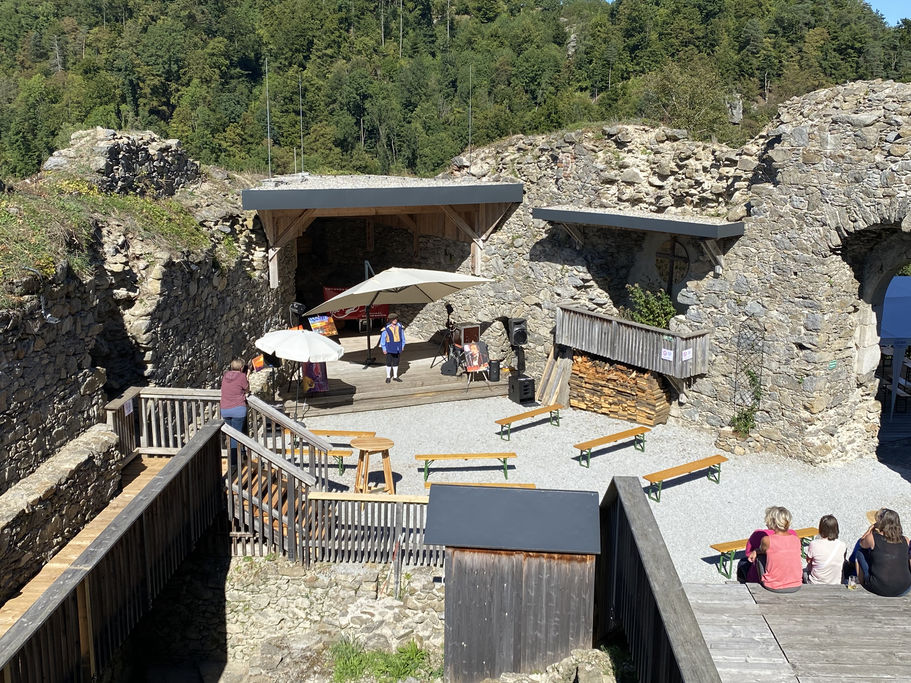 Renate Kogler, die Obfrau des Vereins zur Erhaltung der Burgruine Lichtenhag, teilte ihre persönlichen Erfahrungen und Erinnerungen an die vergangenen 11 Jahre, die sie und ihr Mann am Areal der Ruine lebten. Mit lebhafter Erzählkunst vermittelte sie einen Einblick in das besondere Leben auf dem historischen Gelände und betonte die Herausforderungen und Freuden, die mit der Renovierung und Instandhaltung des kulturell bedeutsamen Erbes verbunden sind. Die Besucher konnten sich somit ein umfassendes Bild von der Bedeutung und dem kulturellen Wert der Burgruine Lichtenhag machen, während sie auf das bevorstehende musikalische Ereignis hin fieberten.