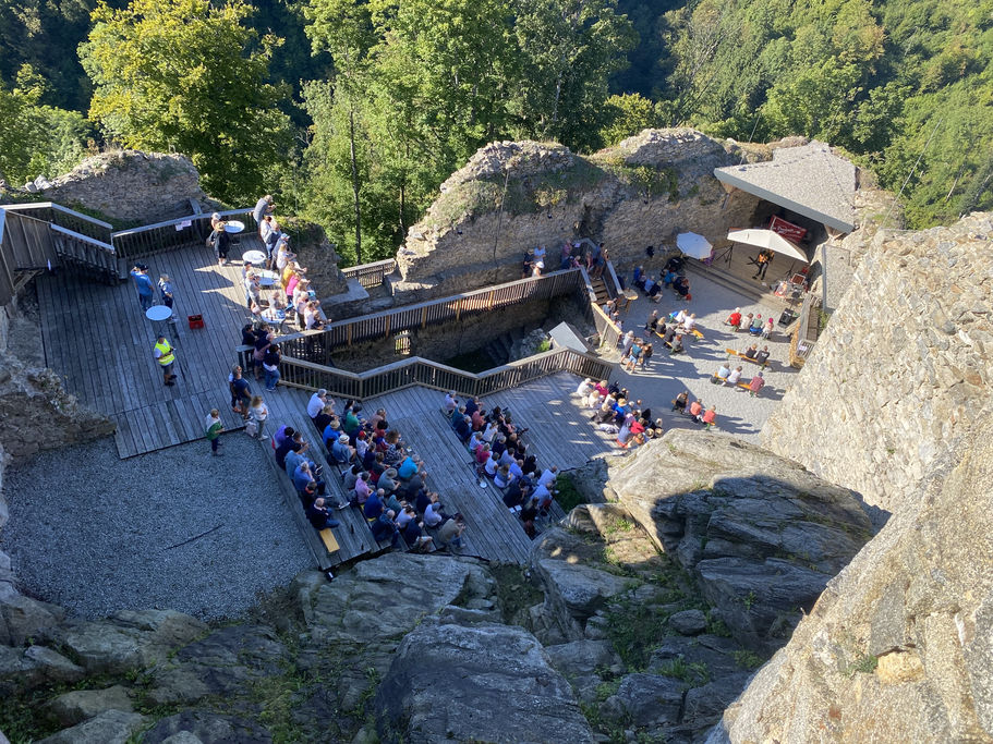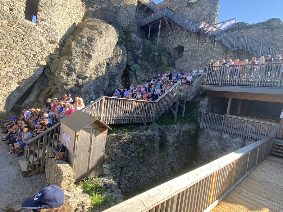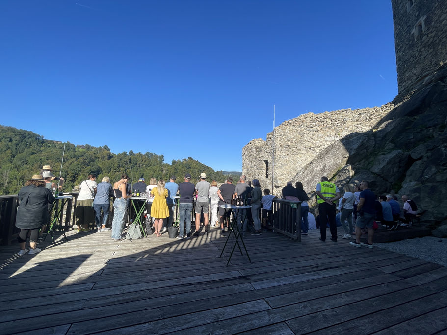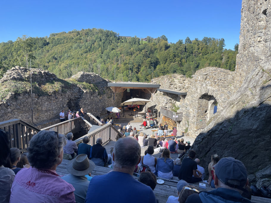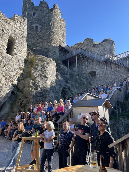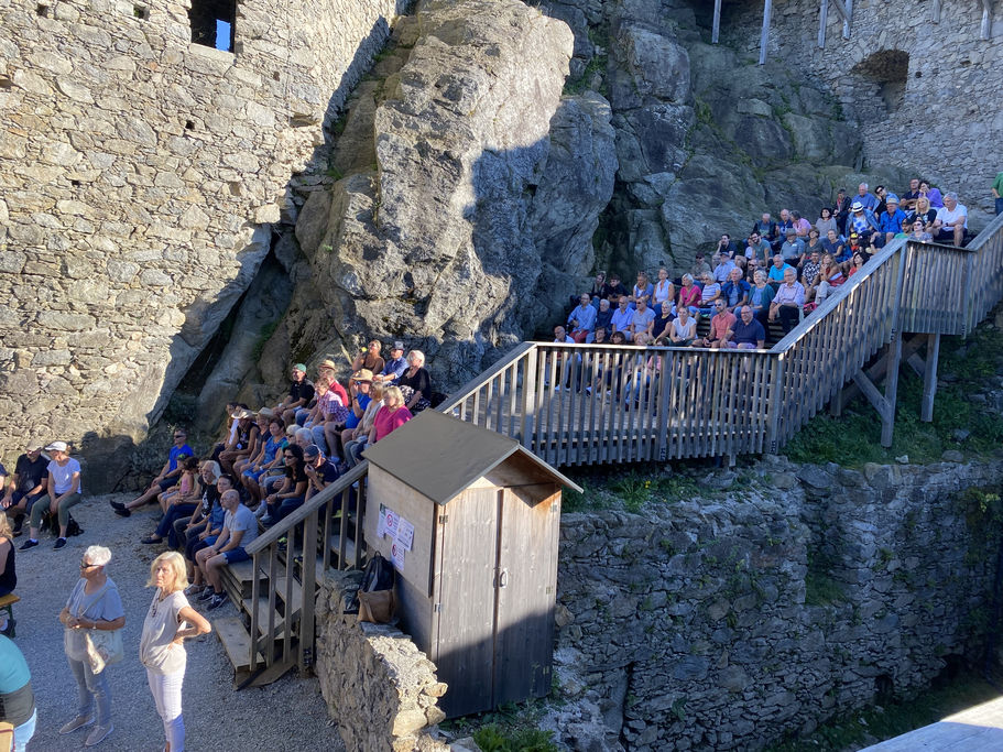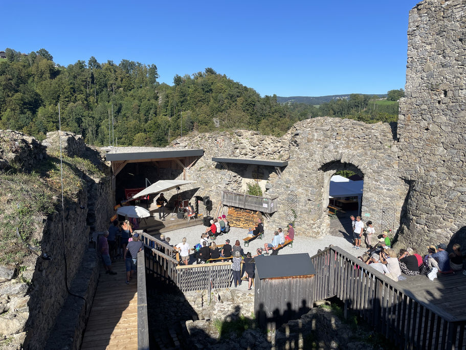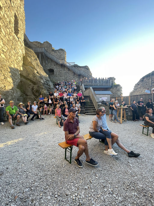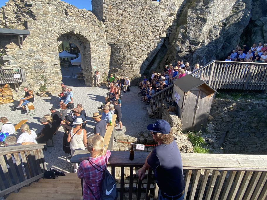 Vor dem mit Spannung erwarteten Konzert bot sich den Besuchern die Gelegenheit, mehr über die Geschichte der Burgruine Lichtenhag zu erfahren. Herbert Ginterseder, ein bekannte Lokalhistoriker, führte die Gäste durch eine faszinierende Erzählung über das Leben auf der Burg und enthüllte faszinierende Details über die einstigen Bewohner und die historische Bedeutung des Ortes. Seine lebendigen Beschreibungen versetzten die Zuhörer zurück in vergangene Jahrhunderte und ließen sie die beeindruckende Vergangenheit der Burg mit neuen Augen betrachten.