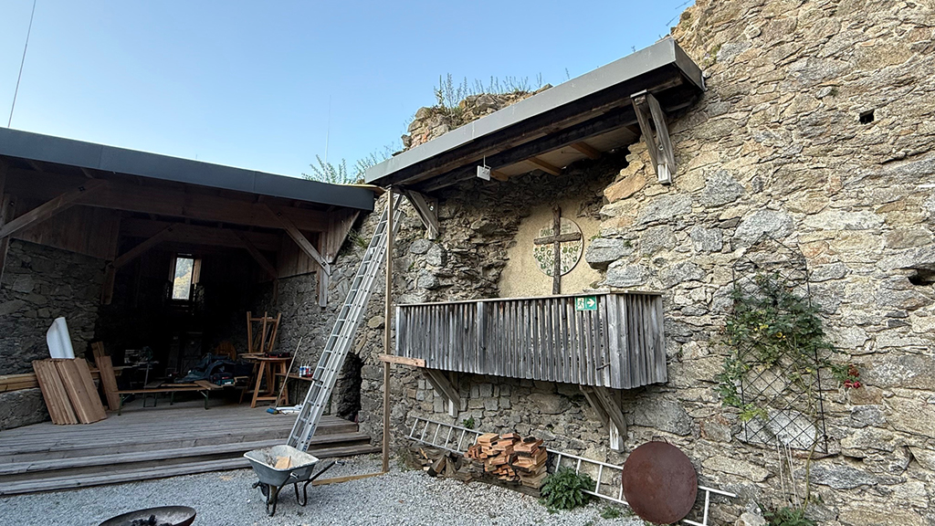 Im Sommer fanden auf der Burgruine wichtige Arbeiten statt. Die teilweise bereits in die Jahre gekommenen Holztreppen und Brücken wurden ausgetauscht, um die Sicherheit für Mitglieder, Besucherinnen, Besucher und Gäste zu gewährleisten. Auch ein stark beschädigtes, teilweise eingestürztes Dach wurde erneuert. Ein großes Dankeschön an unser Vereinsmitglied Gerhard Hofer, der sich mit großem Einsatz um diese Arbeiten gekümmert und sie fachgerecht durchgeführt hat! Ebenso ein herzliches Danke an alle Vereinsmitglieder – durch die Mitgliedsbeiträge können solche Maßnahmen umgesetzt werden.