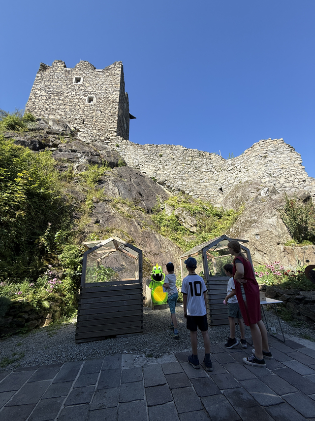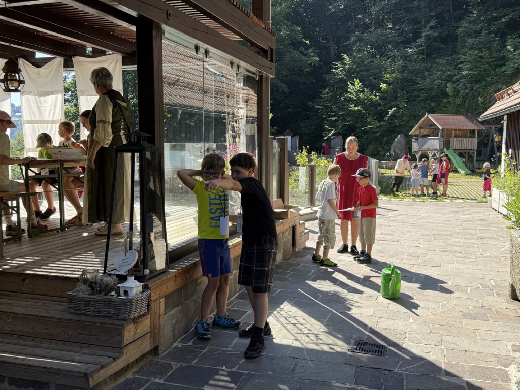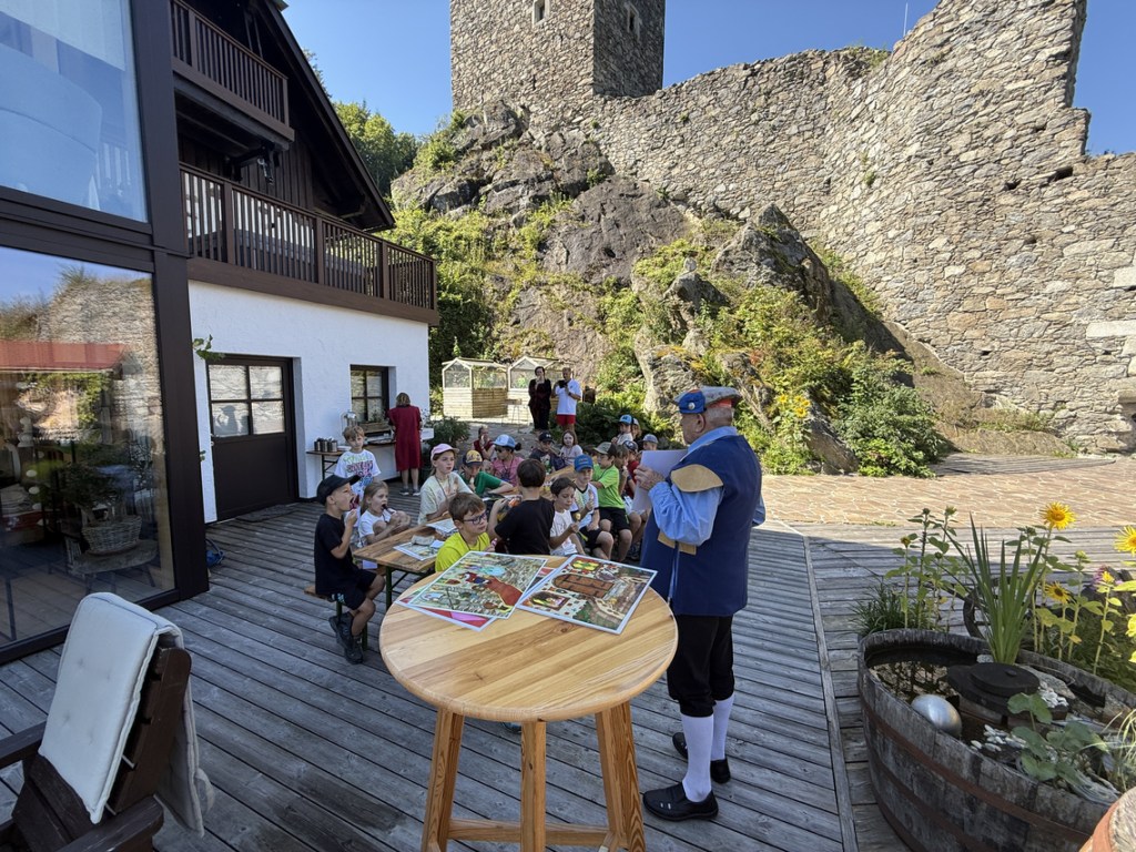 Wir freuen uns immer sehr, wenn das Ferienprogramm auf der Burgruine Lichtenhag so großen Anklang findet. An diesem Augusttag wanderten 20 Kinder sowie Begleitpersonen vom Verein und von der Gemeinde gemeinsam vom Marktplatz in Gramastetten zur Burgruine. Nach einer rund 20-minütigen Wanderung erwarteten weitere Vereinsmitglieder – mittelalterlich verkleidet – die Gruppe beim Eingang zum Areal.
