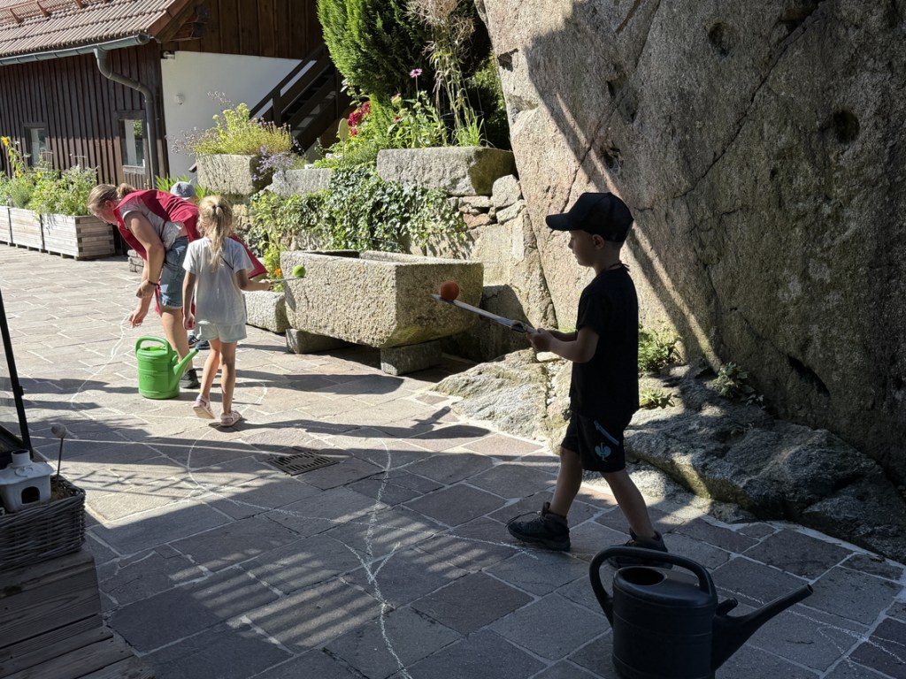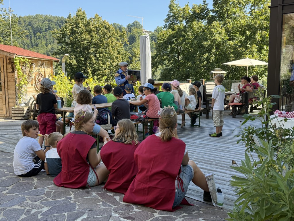 Bei strahlendem Wetter genossen im August 20 Kinder spannende Stationen mit Stempelpass, Ritterspiele und Abkühlung im Pool. Beim Knackerbraten, Stockbrot, Eis und Kuchen fand der Vormittag einen fröhlichen Abschluss.